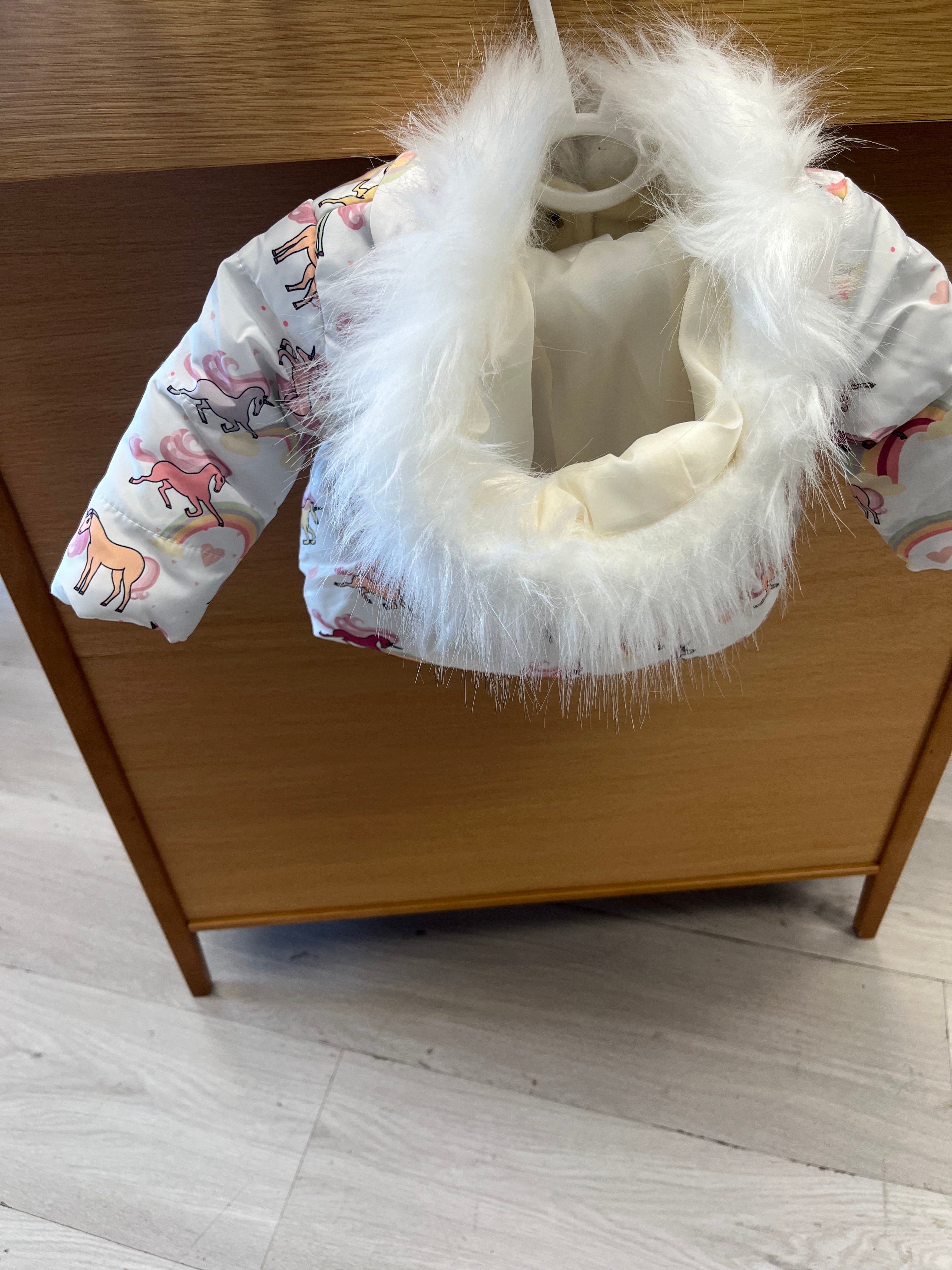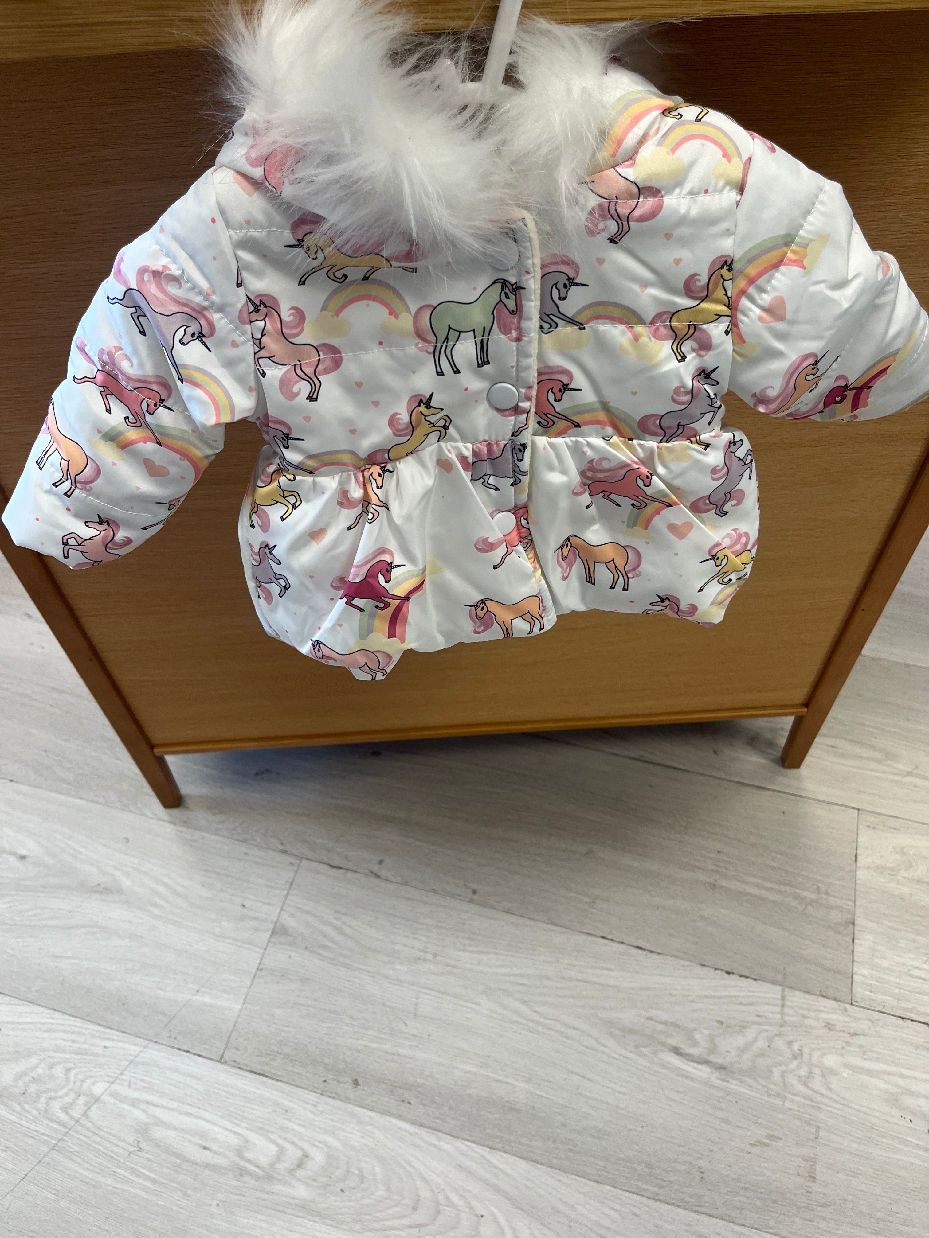 Baby Girls Unicorn Puffer Jacket - White