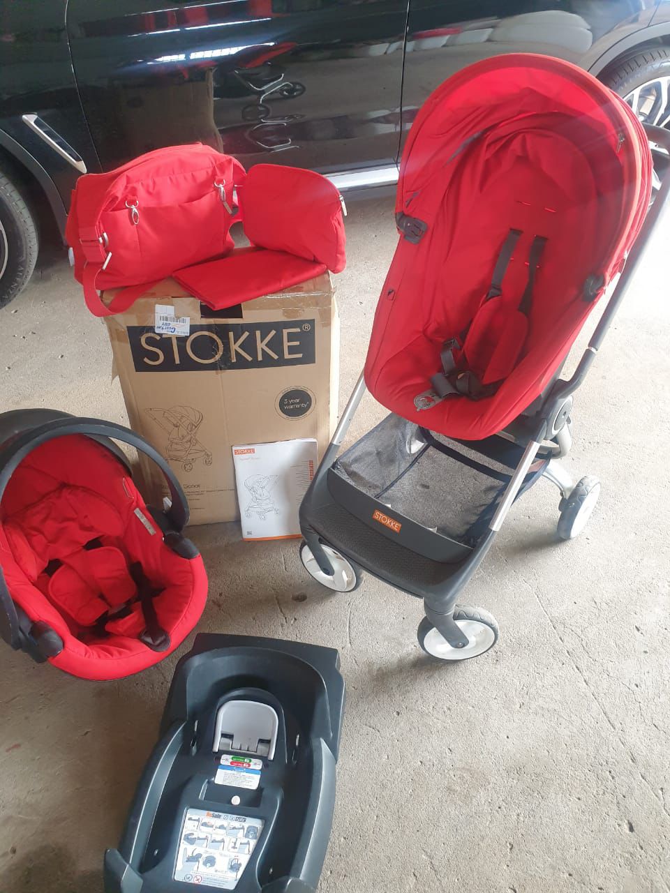 Stokke Scoot pram with car seat and isofix base including baby bag (RED)*